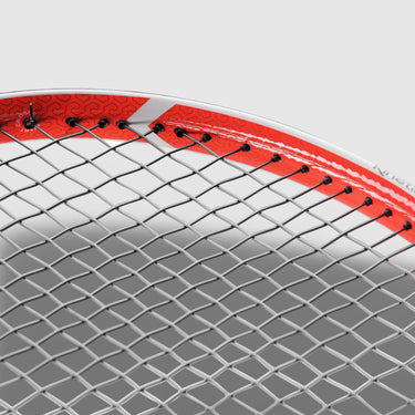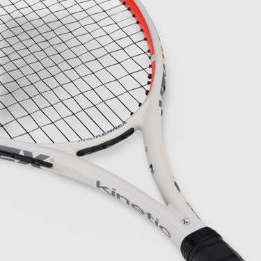 Kinetic Technology: When the opening movement is performed with the Kinetic racquet, the Kinetic Mass microspheres contained in the capsules inserted inside the frame are charged with kinetic energy. When the ball hi ts the strings, it becomes compressed and the strings bend.
