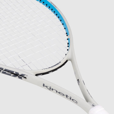 Kinetic Technology: When the opening movement is performed with the Kinetic racquet, the Kinetic Mass microspheres contained in the capsules inserted inside the frame are charged with kinetic energy. When the ball hi ts the strings, it becomes compressed and the strings bend.
