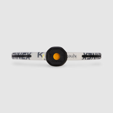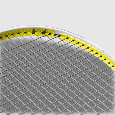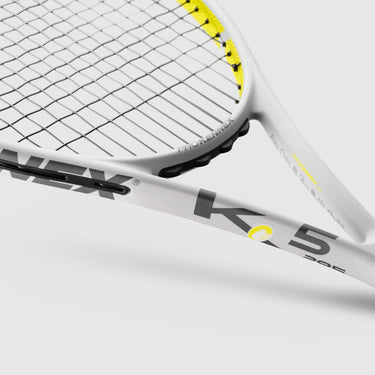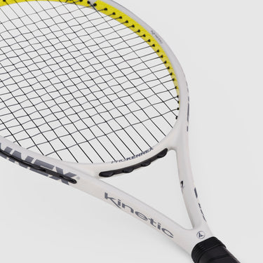 Kinetic Technology: When the opening movement is performed with the Kinetic racquet, the Kinetic Mass microspheres contained in the capsules inserted inside the frame are charged with kinetic energy. When the ball hi ts the strings, it becomes compressed and the strings bend.