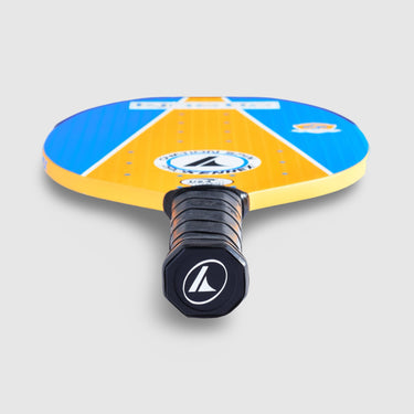 The Ovation Spin also debuts our updated “Oval” shape, engineered for superior performance. The flattened tip increases surface area and paddle length while providing a tennis-friendly feel. This streamlined design reduces weight at the corners, allowing for quicker paddle rotation and enhanced maneuverability.