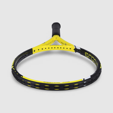 Kinetic Technology: When the opening movement is performed with the Kinetic racquet, the Kinetic Mass microspheres contained in the capsules inserted inside the frame are charged with kinetic energy. When the ball hi ts the strings, it becomes compressed and the strings bend.