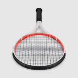 Kinetic Technology: When the opening movement is performed with the Kinetic racquet, the Kinetic Mass microspheres contained in the capsules inserted inside the frame are charged with kinetic energy. When the ball hi ts the strings, it becomes compressed and the strings bend.