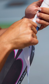 The white and pink colors decorate this 11mm wide paddle core, Daniel's professional colors.